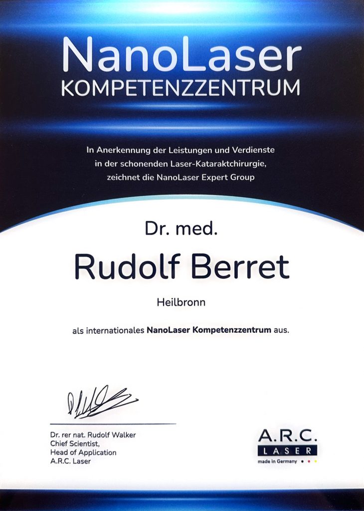 Dr. Berret führt neben allgemeinen augenärztlichen Untersuchungen und Behandlungen schwerpunktmäßig ambulante Augenoperationen durch. Bereits während seiner Facharztausbildung hat er sich auf operative Behandlungen des Grauen Stars und die Korrektur von Fehlsichtigkeiten spezialisiert.